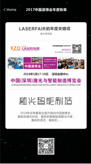 2017年悄然過去,支付寶的年度賬單火爆了朋友圈,這份賬單細數著你的點滴,也搭載著2018年的新希望伴您前行。2018中國(深圳)激光與智能制造博覽會(簡稱中國激博會)再起航,與您相約2018年5月17-19 日。