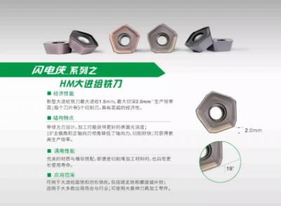 2、歐科億的新品閃電俠系列之HM大進給銑刀可用于大進給面銑和仿形銑削,包括坡走銑和螺旋插補銑;適用于大多數應用場合和行業;可使用大懸伸刀具加工零件。在實際使用案例中,刀具壽命提升效果明顯。此系列新品有雙面8個切削刃;曲線刃設計有效降低切削力;刃口鋒利,切削輕快;大角度修光刃可以在面銑時保證很好的表面質量;最大切深可達6.5mm。獨特的螺旋刃設計,垂直度好,最大切深可達13mm,大切深下,仍保持好的垂直度;經濟性好,6個切削刃;自帶修光刃,工件表面質量好;通用性好,用于P、M、K材料的面銑、方肩銑、槽銑。