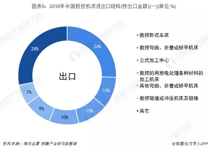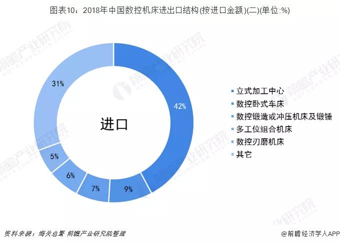 從出口結構上來看,我國數控臥式車床占我國總出口的26%;從進口結構上來看,我國立式加工中心占我國總出口的42%。
