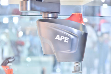 艾派(APE)公司展示了最小六軸機器人。自主開發的一款高精度機器人,精度達到0.5mm.適合三C電子產品智能制造。