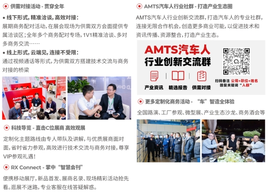 AMTS 2025將通過微型展、海外路演、商務配對、行業社群、線下沙龍、線上展廳、線上研討會及其他更多定制化商務活動。以全新的活動形式,為汽車人建立一站式360°的商務平臺。觀眾可以隨時隨地了解汽車行業資訊及解決方案,建立全新聯接,構建產業生態圈。