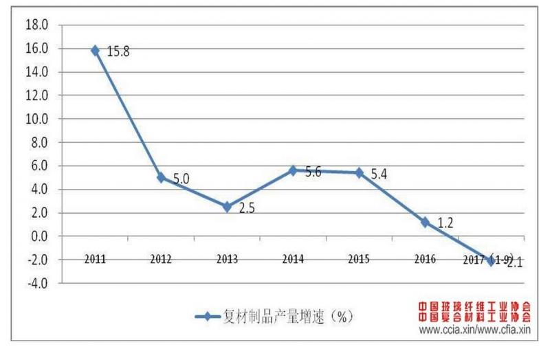 圖 3 復(fù)合材料制品行業(yè)近年來產(chǎn)量增速變化情況