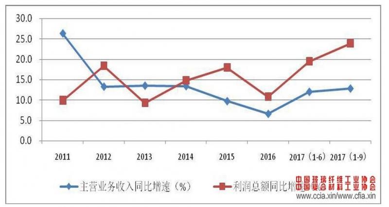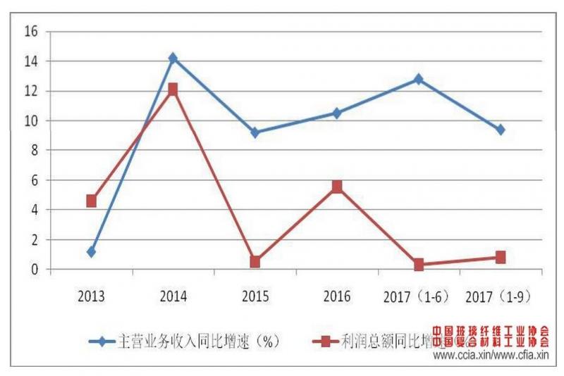 面對(duì)當(dāng)前新形勢(shì)新挑戰(zhàn),纖維復(fù)合材料行業(yè)一方面在政府產(chǎn)業(yè)政策引導(dǎo)、協(xié)會(huì)宣傳及大企業(yè)帶頭領(lǐng)導(dǎo)下,全行業(yè)積極形成行業(yè)共識(shí),努力控制行業(yè)產(chǎn)能增長,另一方面企業(yè)積極應(yīng)對(duì)環(huán)保趨嚴(yán)及成本上漲壓力,通過提升企業(yè)規(guī)范管理水平和實(shí)施轉(zhuǎn)型調(diào)整,努力實(shí)現(xiàn)企業(yè)專業(yè)化差異化發(fā)展,不斷尋求企業(yè)新的發(fā)展機(jī)遇和空間。1-9 月份,規(guī)模以上玻璃纖維及復(fù)合材料企業(yè)實(shí)現(xiàn)主營業(yè)務(wù)收入 2129.2 億元,同比增長 11.5%;利潤總額 152.1 億元,同比增長 15%。利潤增速明顯快于主營業(yè)務(wù)收入增速。