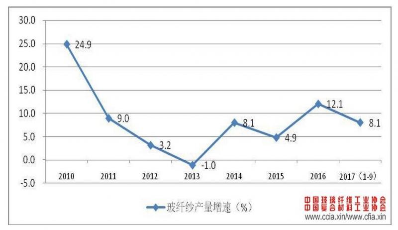圖 1 玻璃纖維行業(yè)近年來產(chǎn)量增速變化情況